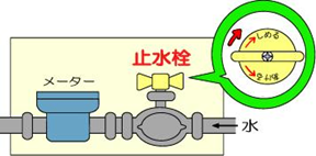 空き家や長期に留守にする場合、寒波で室内の蛇口が凍結し破損する場合がありますので、止水栓を閉めて水抜きすることも有効です。