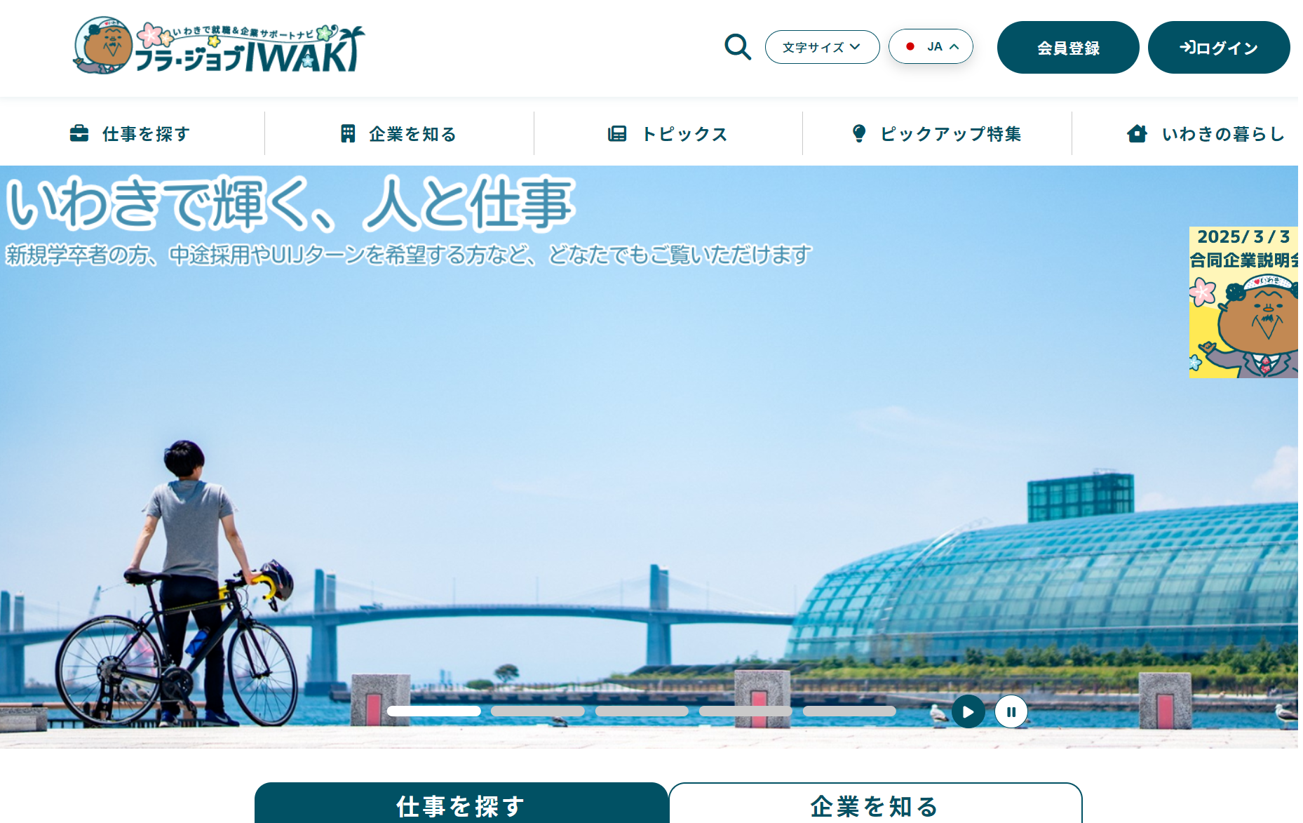 いわきで就職&企業サポートナビ フラ・ジョブIWAKI(いわき市就職応援サイト)