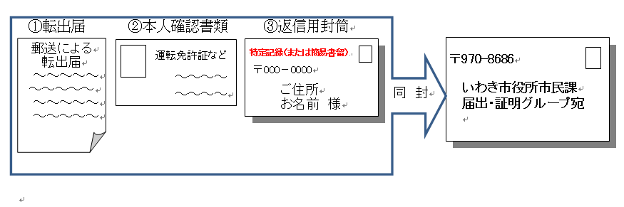 下記の1、2、3を同封し、いわき市役所市民課届出・証明グループへ届出してください。また、各支所、各市民サービスセンターでも受付けます。