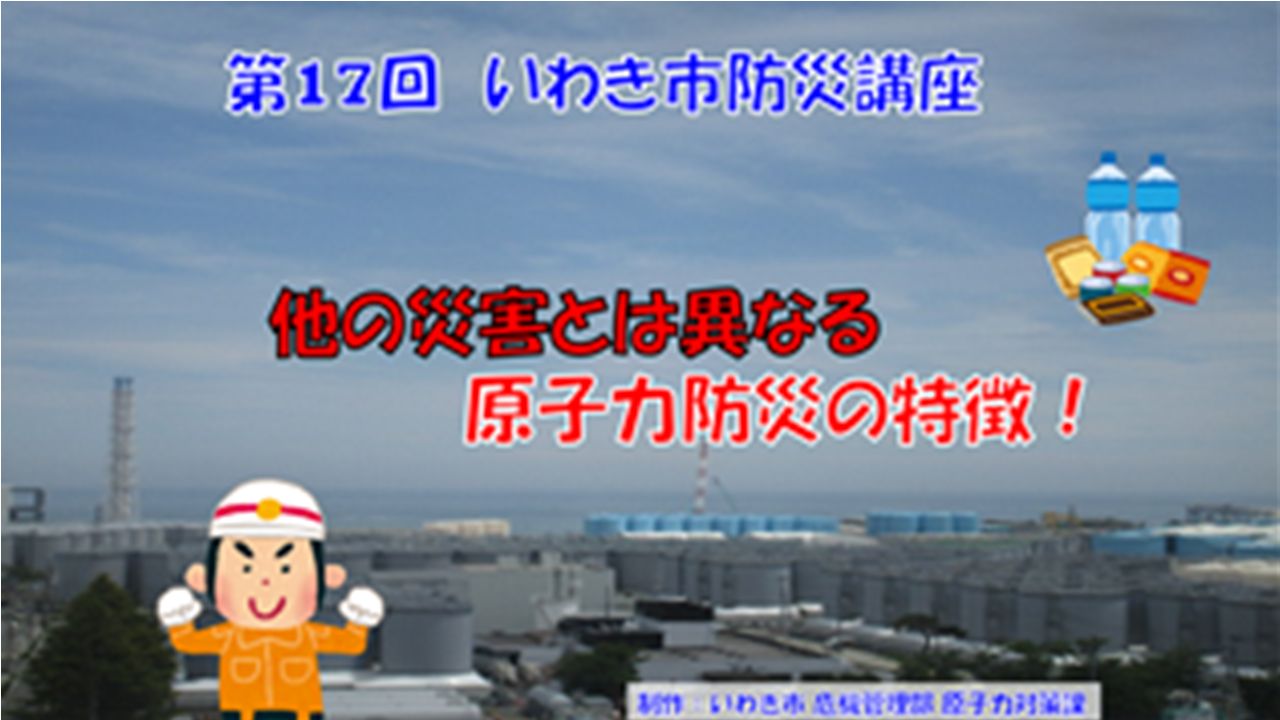 第17回 他の災害とは異なる原子力防災の特徴 万が一の原子力防災のために必要な知識として「放射線による被ばく」「屋内退避」「市外へ広域避難」について、10分でお伝えする動画となっています! ☞動画はこちらから |