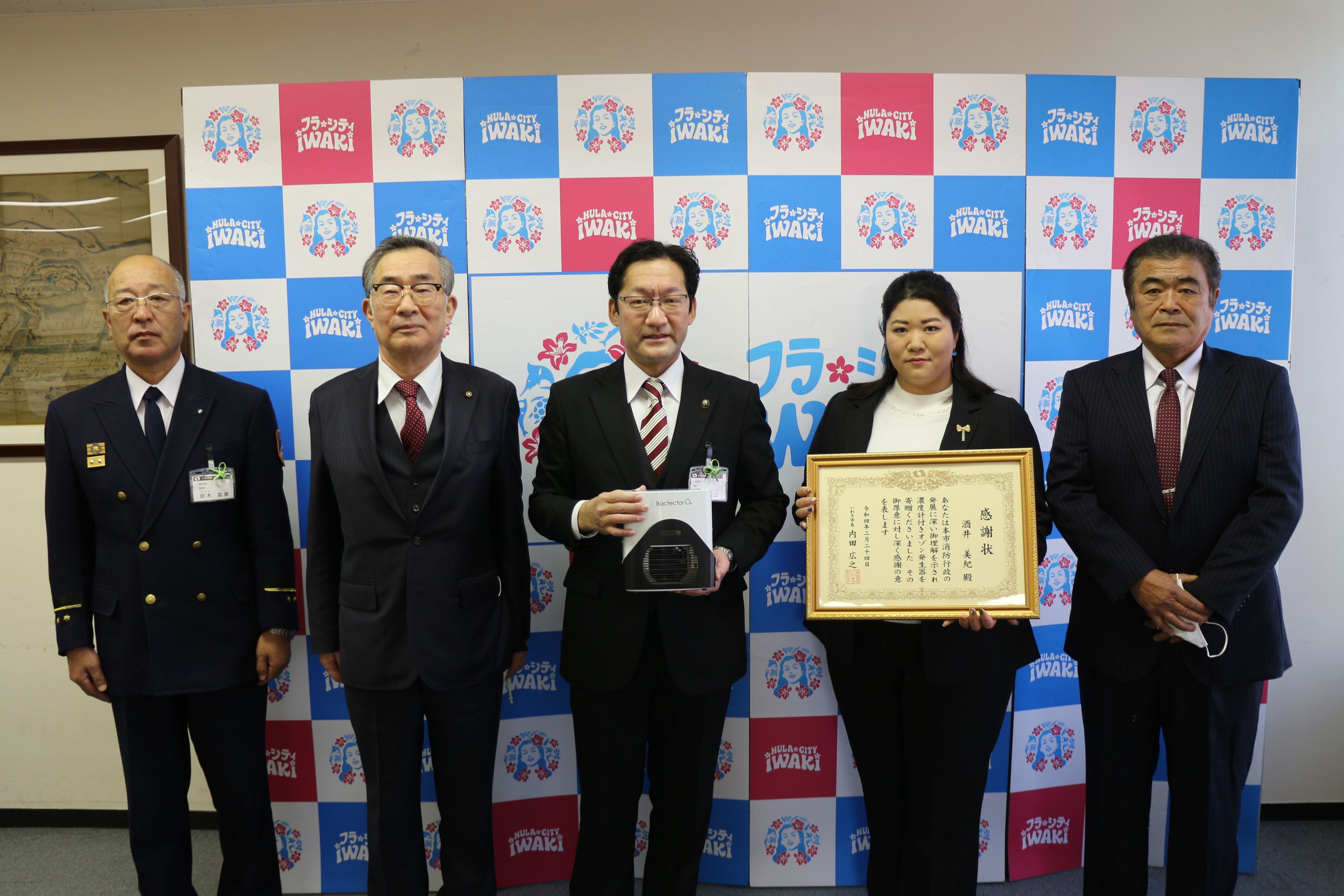 いわき市消防本部では、令和4年2月24日(木)、本市出身のプロゴルファー酒井美紀さんから新型コロナウイルス感染症対策として、濃度計付オゾン発生器の寄贈を受け、いわき市役所において、感謝状の贈呈式を実施しました。