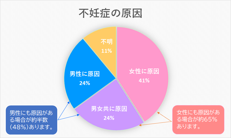 不妊の原因は、女性だけにあるわけではありません。WHO(世界保健機関)によれば、約半数は男性に原因があるとされており、また検査をしても原因がわからないこともあります。