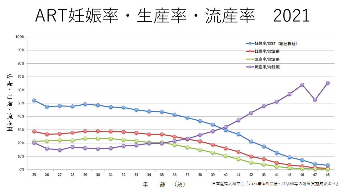 年齢とともに妊娠率は徐々に低下し、30代後半ごろから急激に下がります。