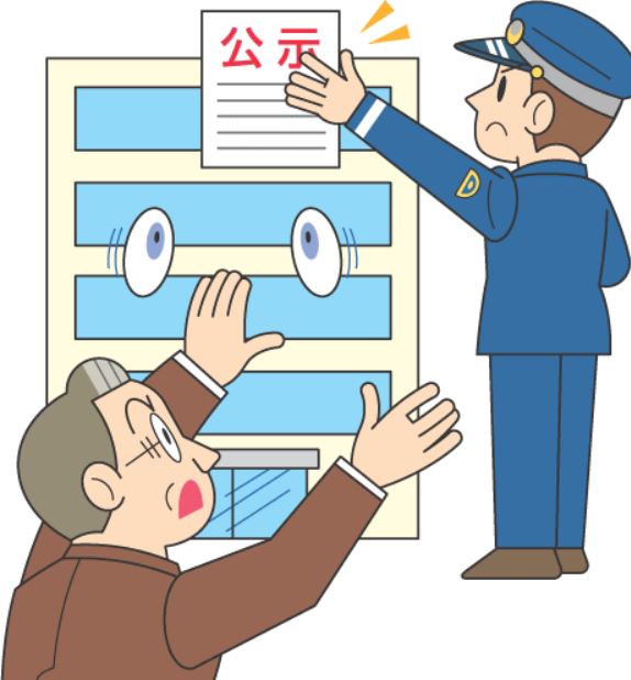 命令を受けると建物利用者に危険を知らせるため建物の出入口などに違反内容が書かれた標識が設置されます。