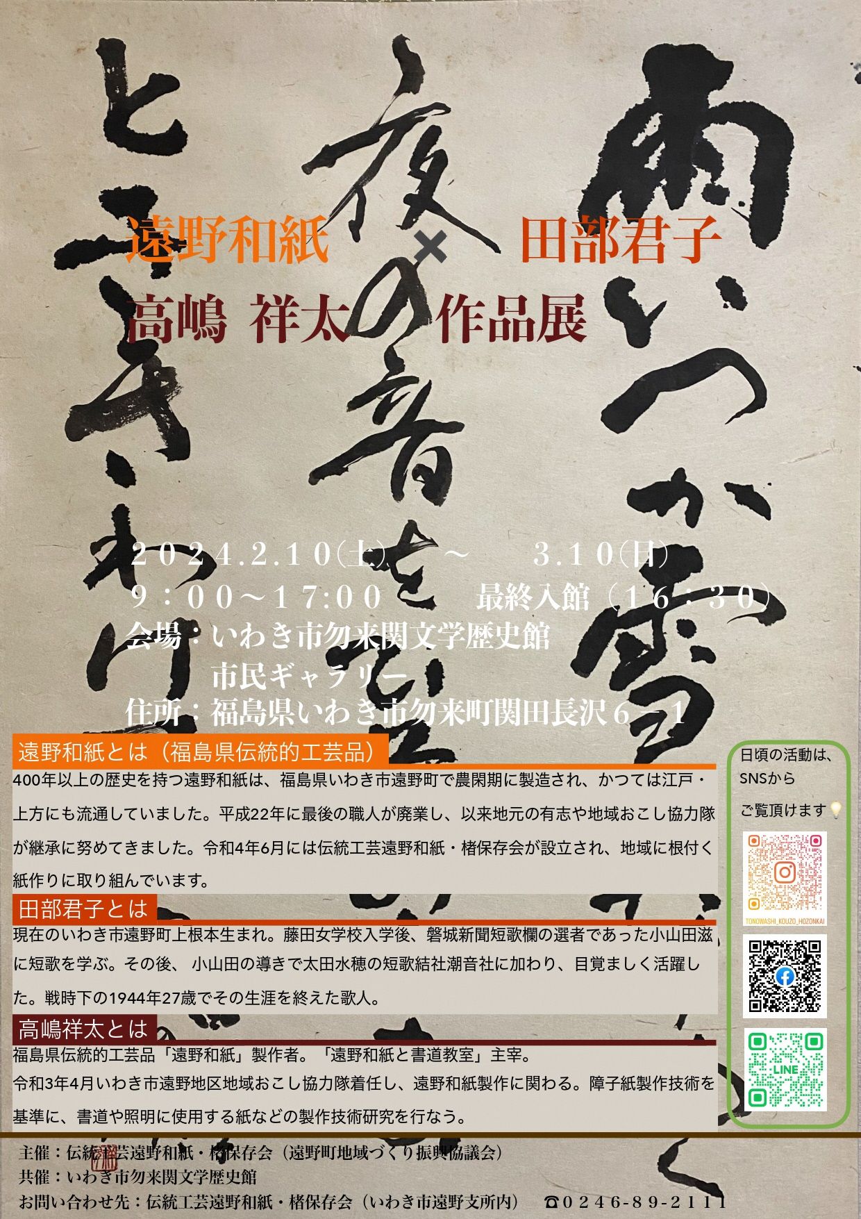 『遠野和紙×田部君子 高嶋祥太作品展』