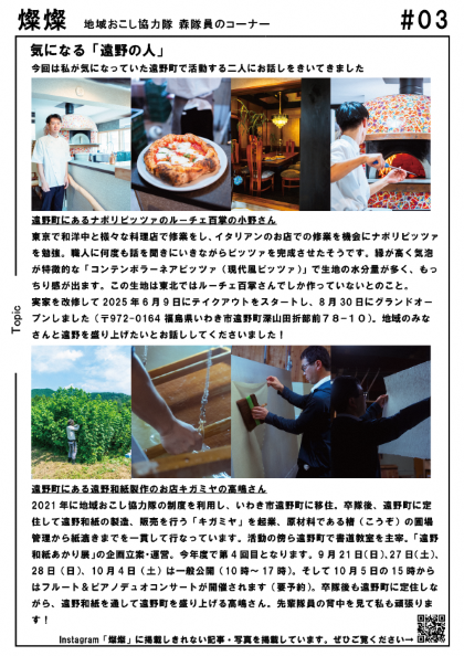 遠野町地域おこし協力隊OBの高嶋祥太さんにご協力いただき撮影・インタビューをしました。