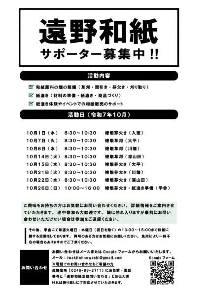 和紙作りの技術を身に付けながら、遠野和紙や遠野町の情報を発信していきます!