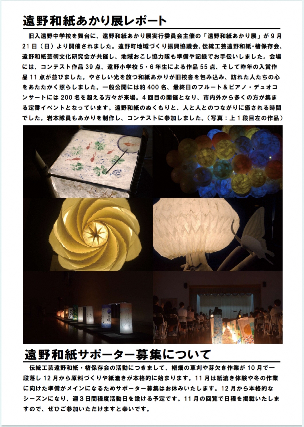 ◆◆◆「遠野和紙あかり展」2023年10月21日(土)22日(日)◆◆◆