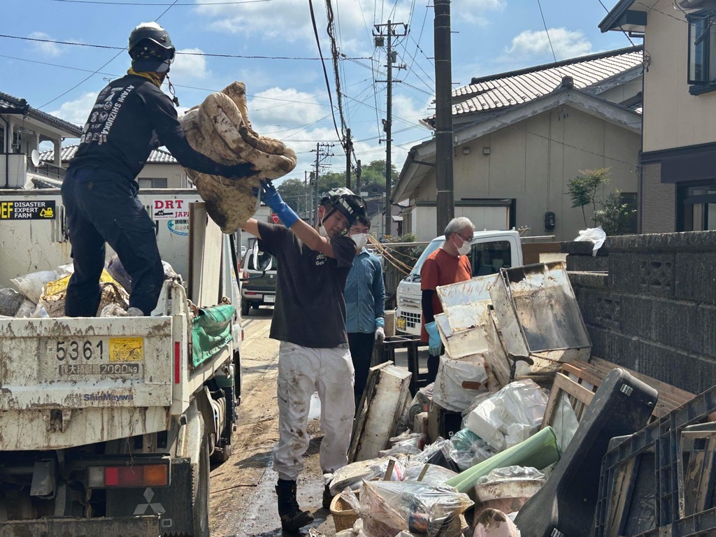 ボランティア活動では、日本財団の協力を得ながら、重機資格を持った職員がバックホウにより、土砂撤去などの活動にあたっております。