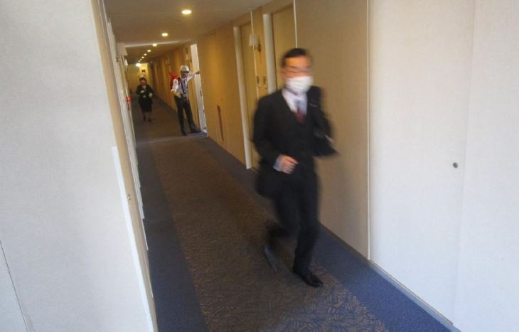 特に大多数のお客様が来館するホテルにおいては、日頃の消防訓練は夜間に出火した想定で訓練を行っており、これは限られた自衛消防隊員で多数のお客様へ対応せざるを得ない状況を想定しております。