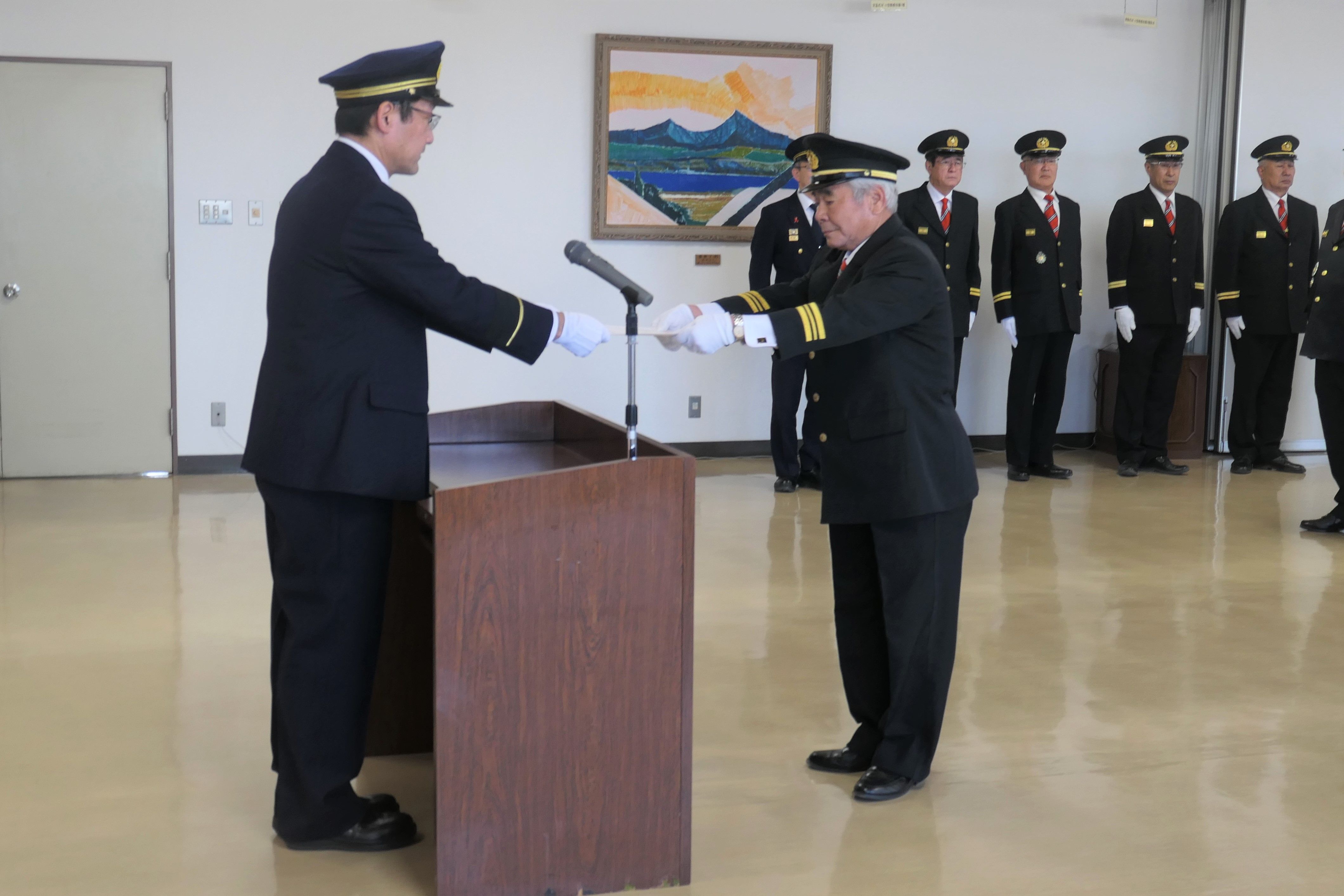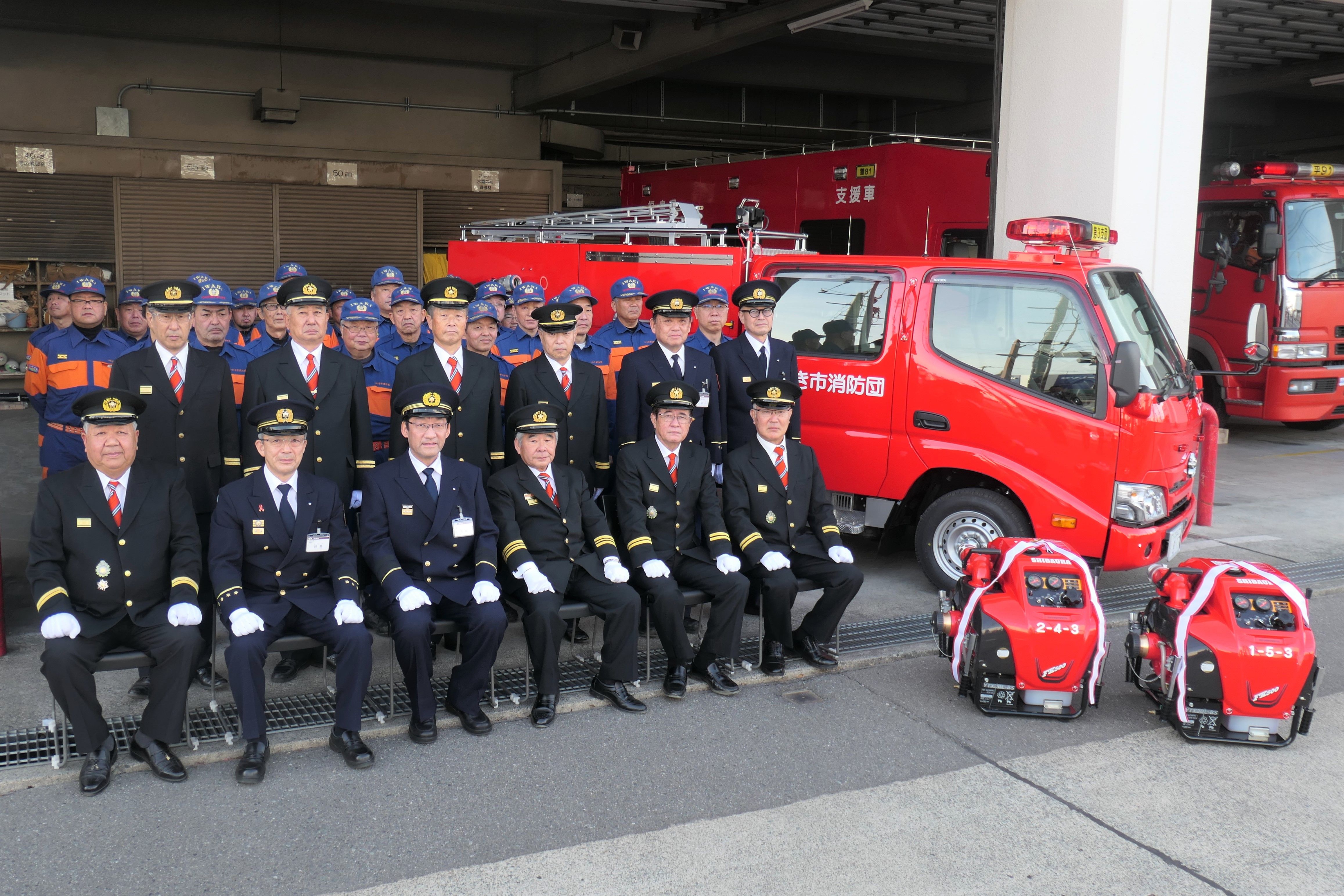 令和6年12月25日(水)、今年度更新となる消防機械について、地域防災力を確保するため、次のとおり市長から消防団長へ交付しました。
