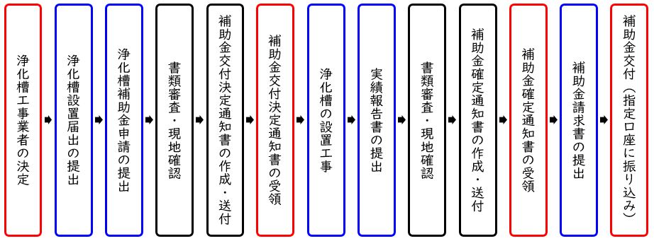 ・青枠は申請者・浄化槽施工業者どちらでも手続きは可能となっております。
