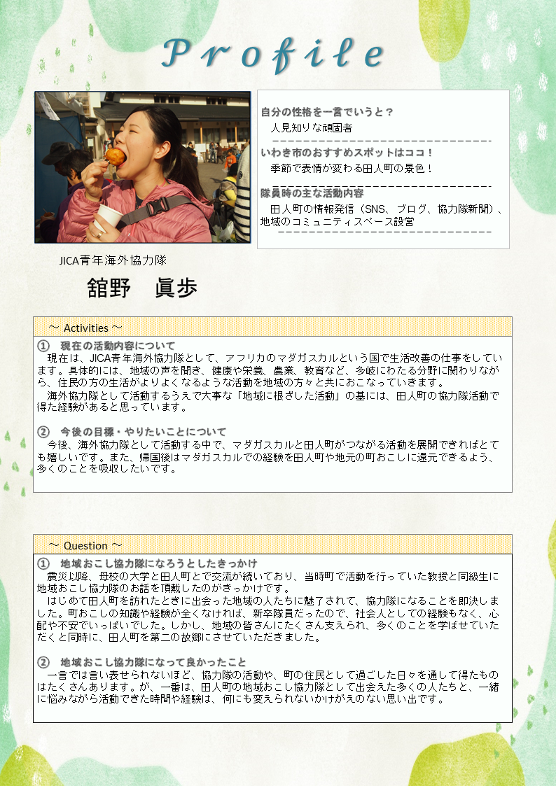 ここでは、地域おこし協力隊がいわき市の魅力を発信し、地域振興に尽力しています。