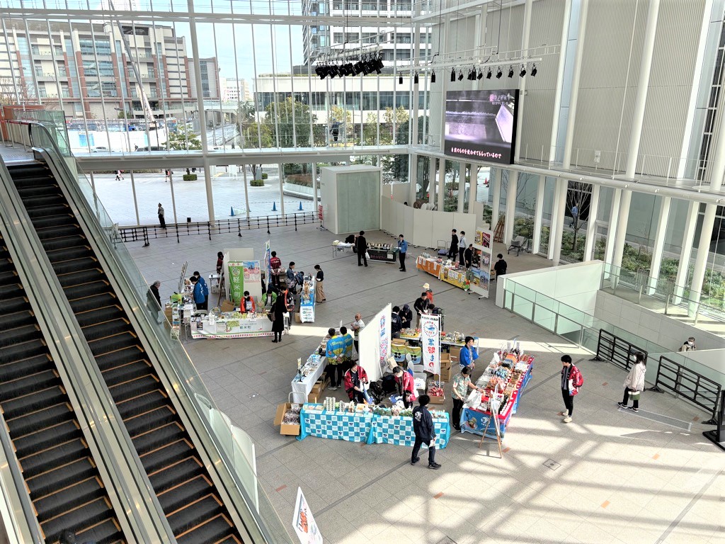 令和7年3月13日~14日 横浜市役所1階アトリウムで、再エネ連携自治体の交流を目的とした物産展が開催されました。