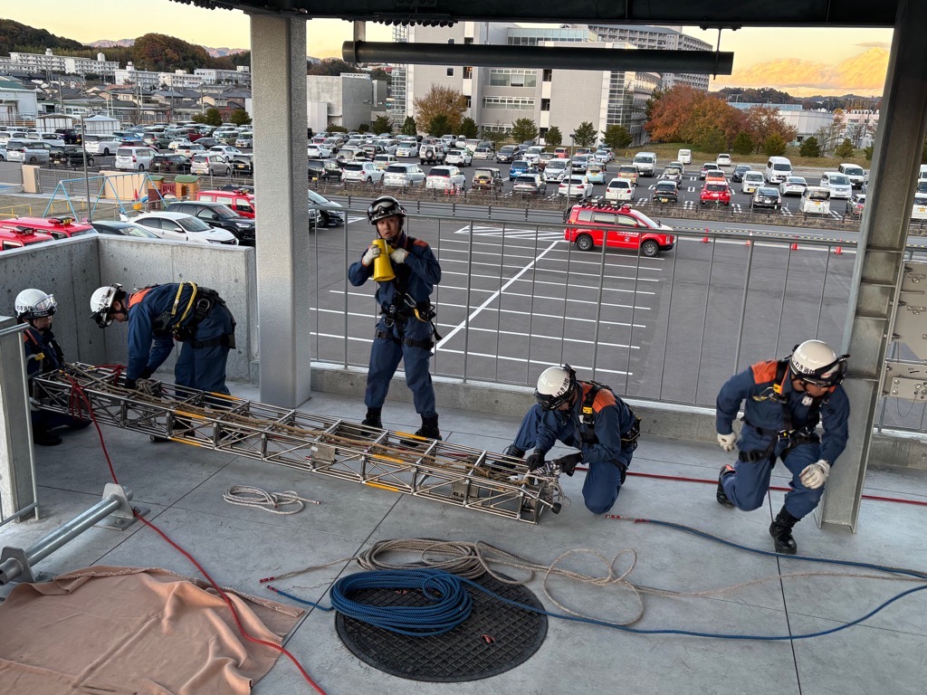 訓練は今年度完成した内郷消防署新庁舎の訓練塔を中心に実施し、より実際の現場に近い形で訓練を実施しました。