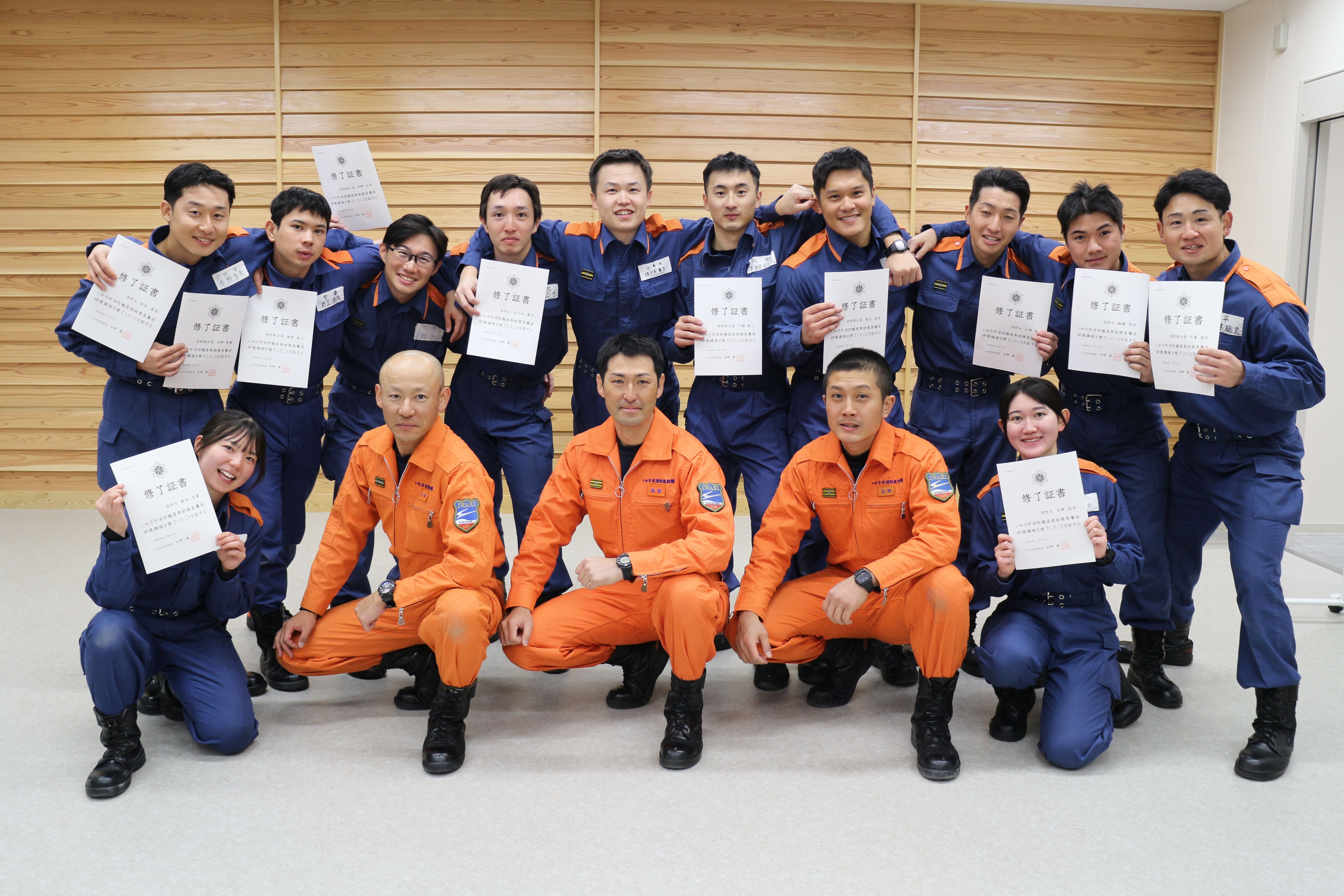 今年度は、事前研修を含めた合計140時間の研修カリキュラムに加え、複雑多様化する災害に対応するため、水難事故や土砂災害訓練などの特殊災害訓練を実施し、研修生12名、全員修了することができました。今回は研修の一部を紹介していきます