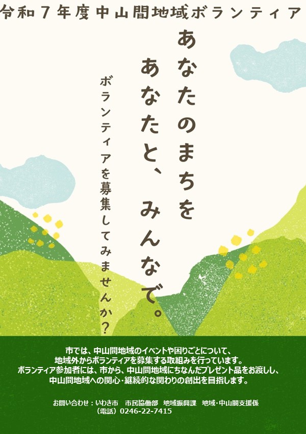 次のとおり、中山間地域ボランティアの受入団体を募集します。
