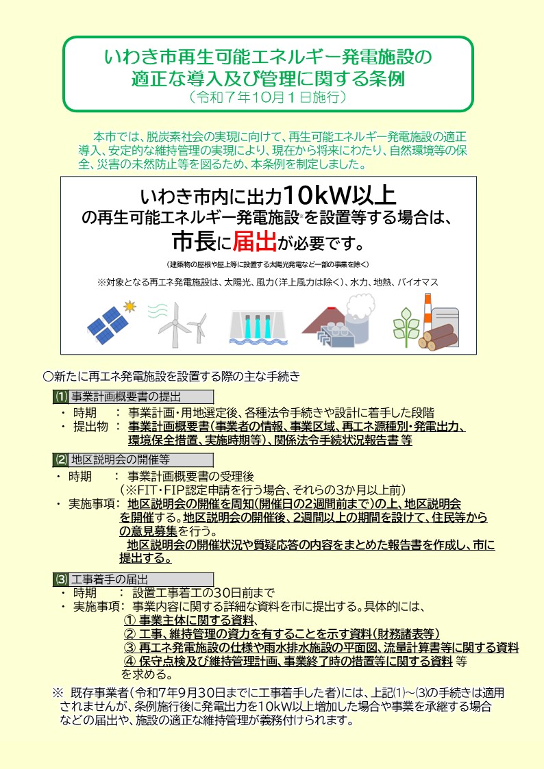 「いわき市再生可能エネルギー発電施設の適正な導入及び管理に関する条例」について (令和7年10月1日施行)