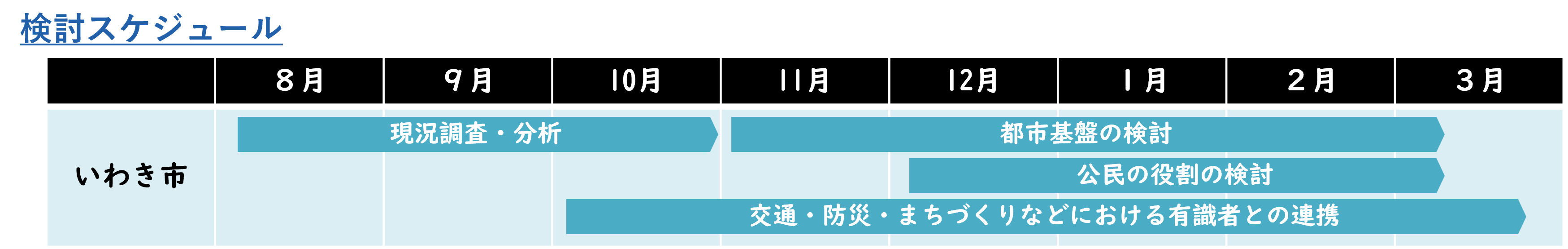 本事業においては、この効果を市内全域へ波及させるため、当該エリアにおける課題(防災・交通)や市として担うべき役割等を整理し、課題解決に向けた調査・検討を行います。